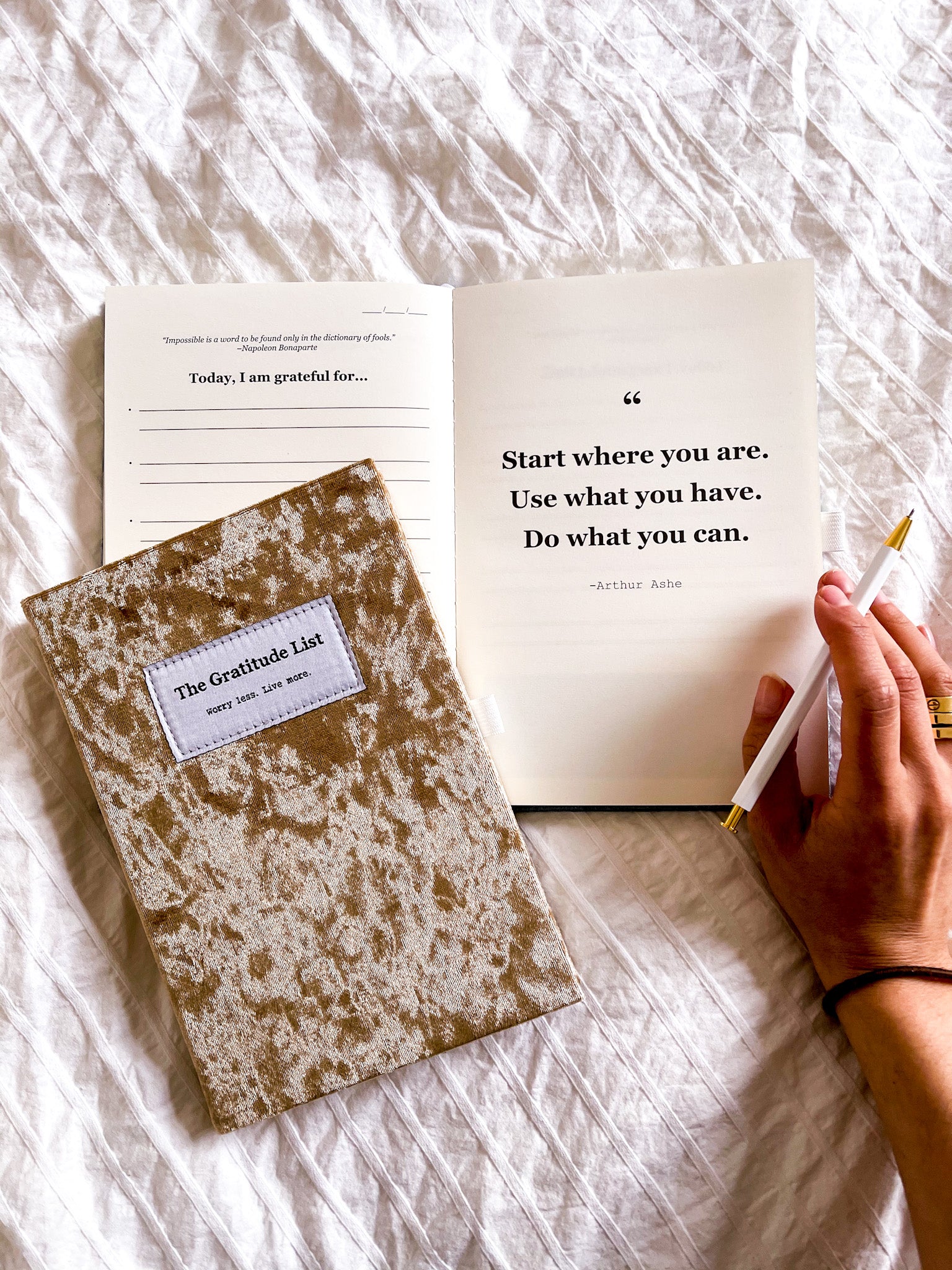 You've got the will, we've got the way. Elevate your daily routine and attract your desires through the powerful force of gratitude. Be happier, reduce anxiety and create the perfect self-love ritual at home, or on-the-go, with your beautiful, soft-touch velvet Gratitude List journal, you'll treasure forever.