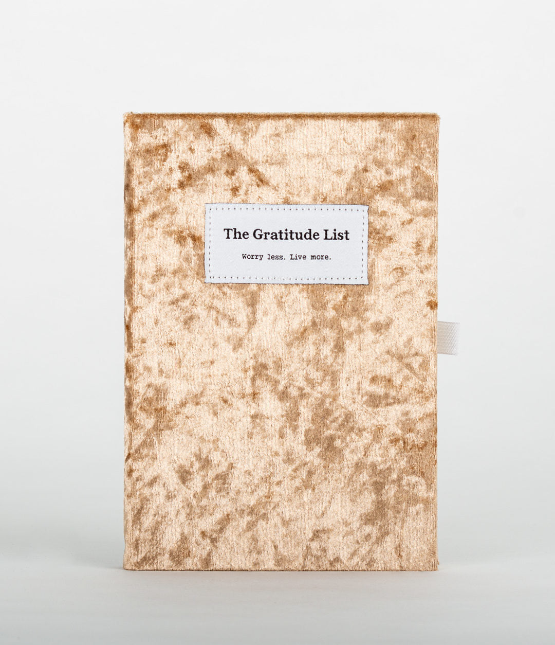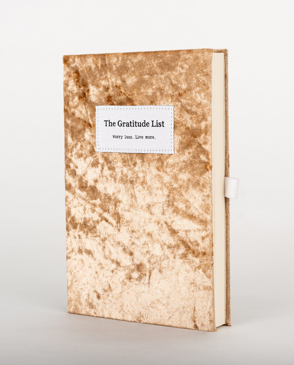 - Velvet-bound design, embroidered slogan patch, page stopper